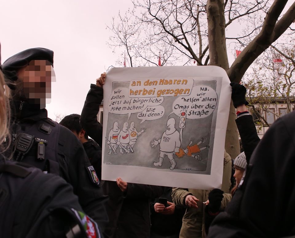 Ein weiterer Infostand der Identitären-nahen Gruppe „Widerstand steigt auf“ in der Breite Straße, konnte aufgrund der Gegenproteste gar nicht stattfinden.