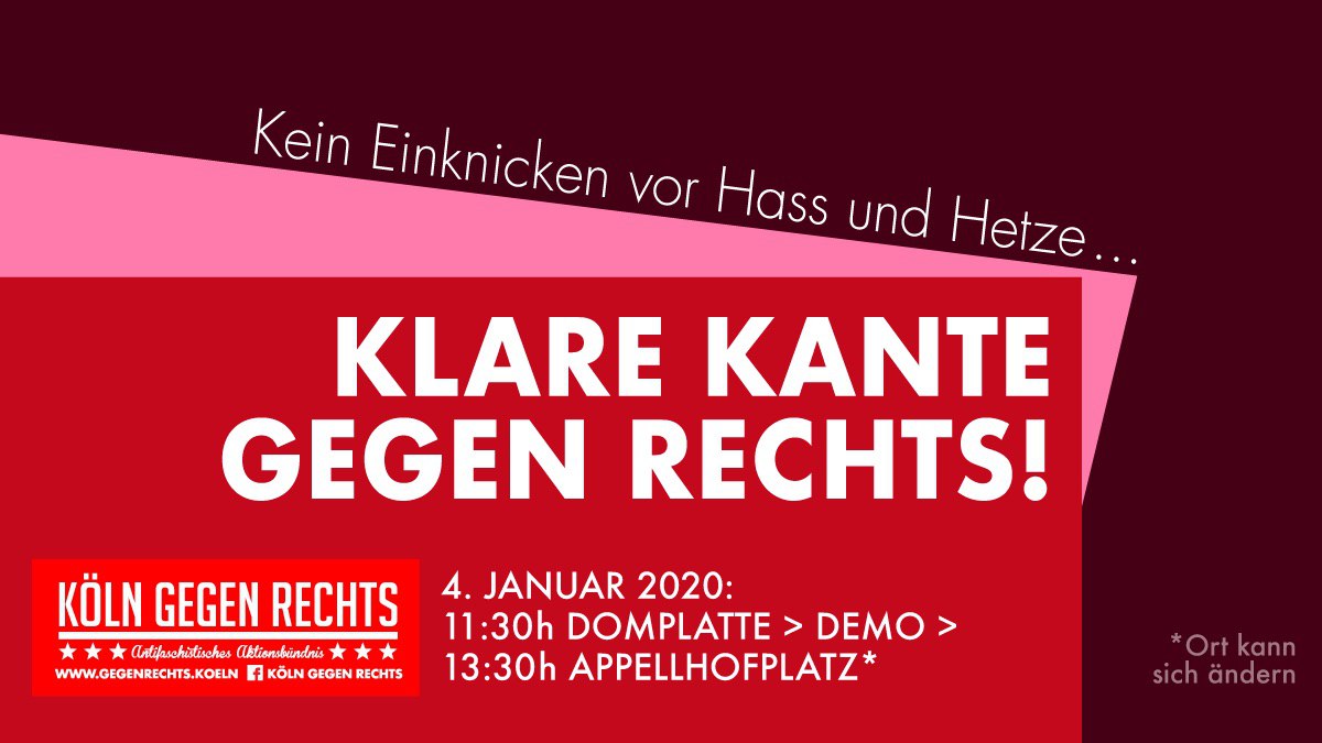 Am kommenden Wochenende, den 04. und 05. Januar 2020, wollen verschiedene rechte Gruppen und Neonazis in Köln gegen den WDR und den öffentlichen Rundfunk demonstrieren.