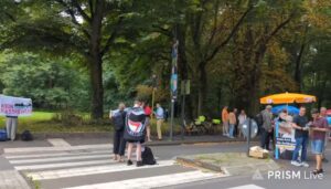 CDU und AFD Stände mit Gegenprotest